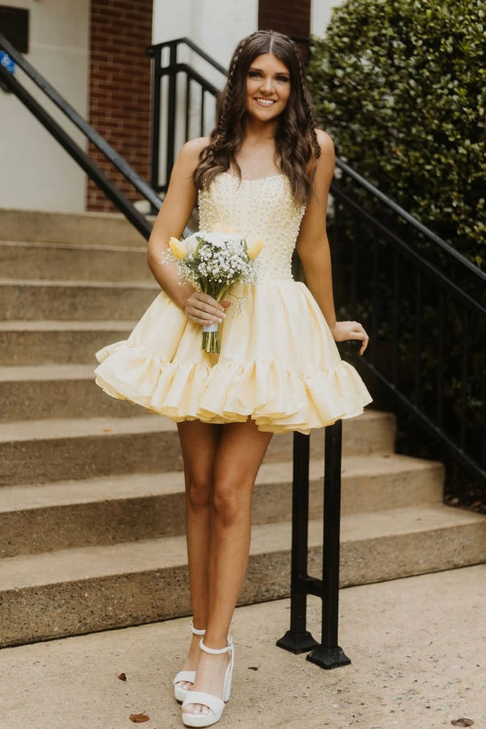 A Line Scoop Neck Daffodial Tulle Homecoming Dress with Beading VK090801