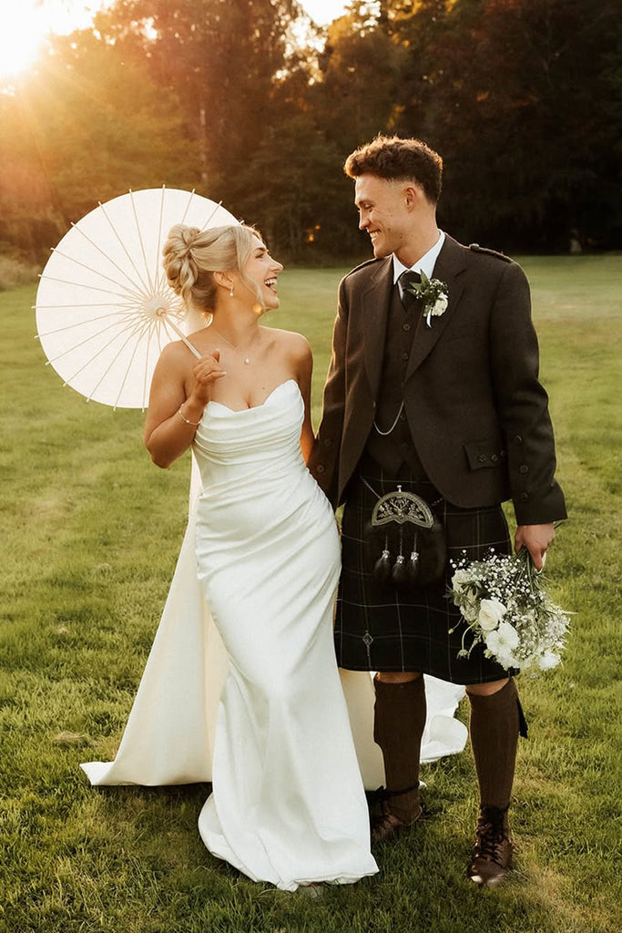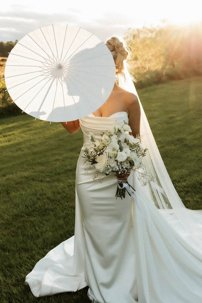 Mermaid Strapless White Satin Wedding Dresses with Train VK25092309