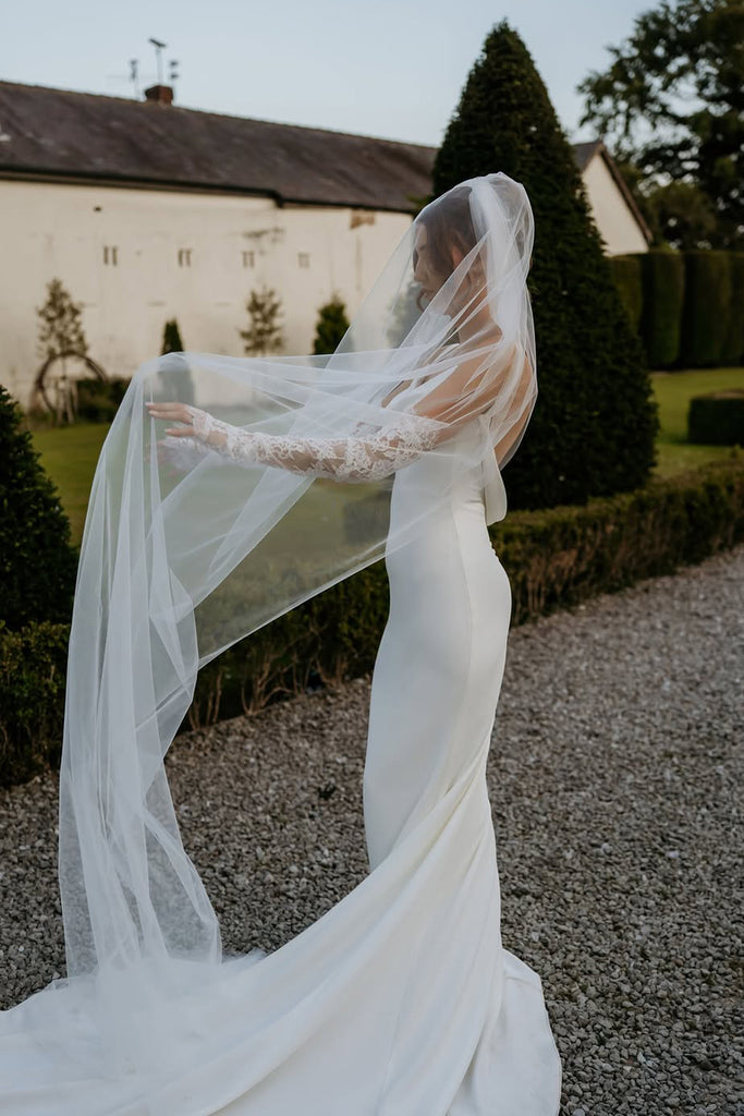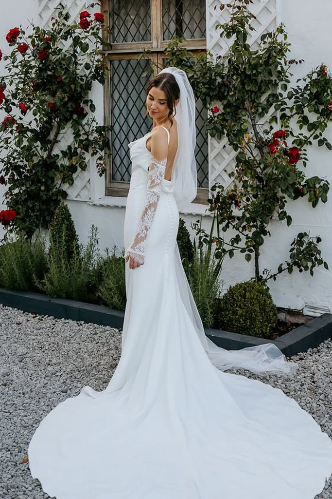 Simple Mermaid Cowl Neck Silk Satin Wedding Dresses with Appliques VK25092302