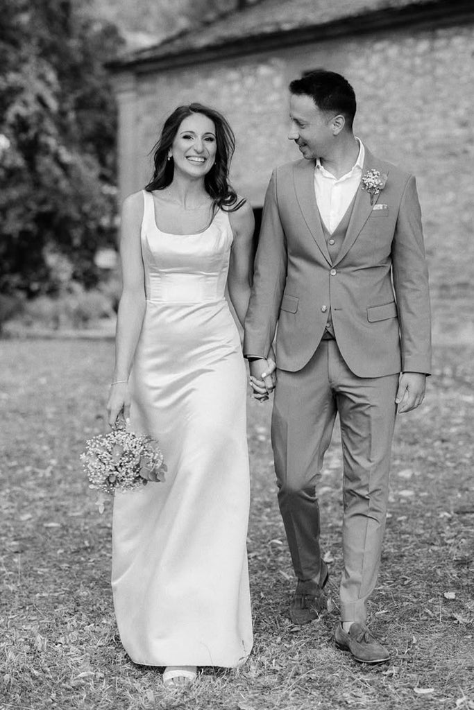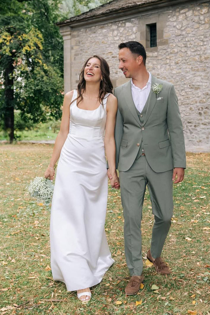 Simple Mermaid Square Neck White Satin Floor Length Wedding Dresses VK25092310