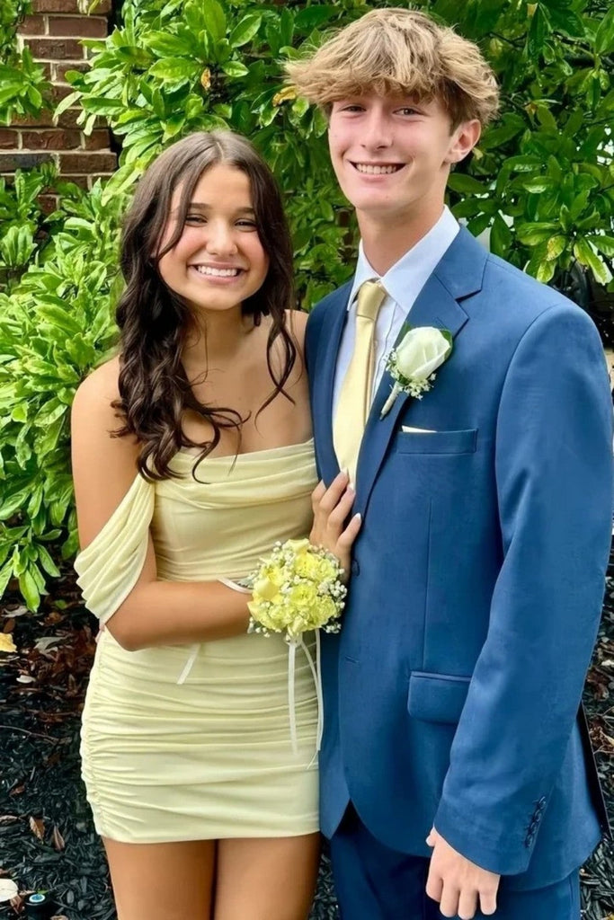 Simple Off-the-Shoulder Ruched Bodycon Short Homecoming Dress VK25092902