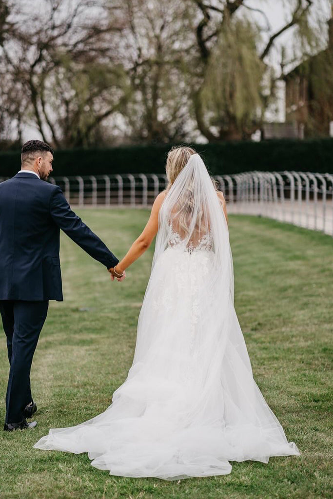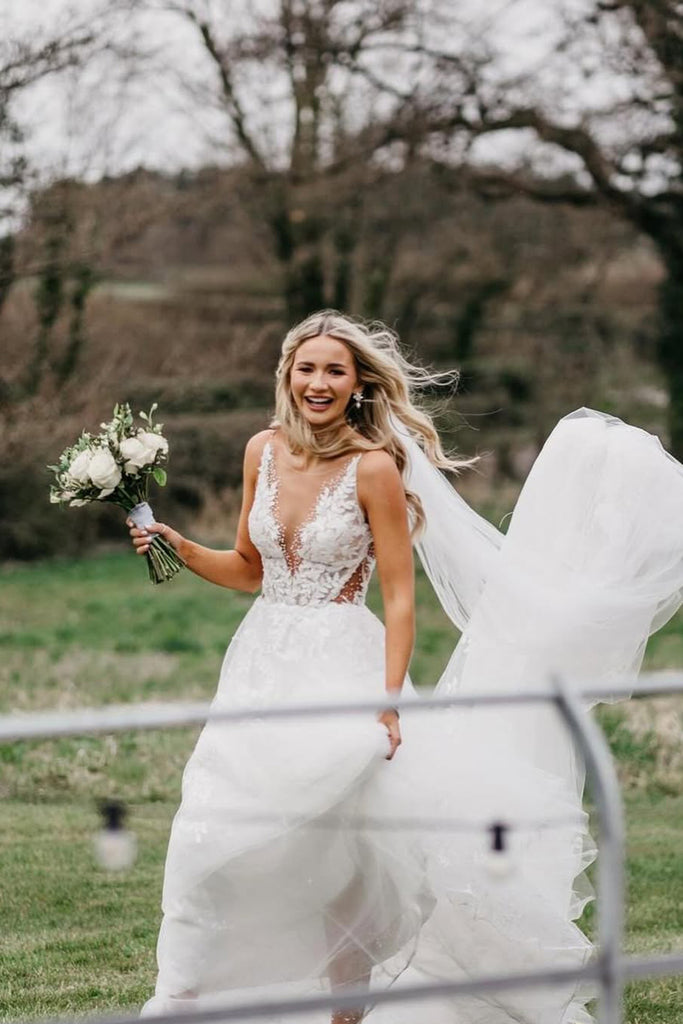 Boho A Line V Neck Tulle Wedding Dresses with Appliques VK25051403