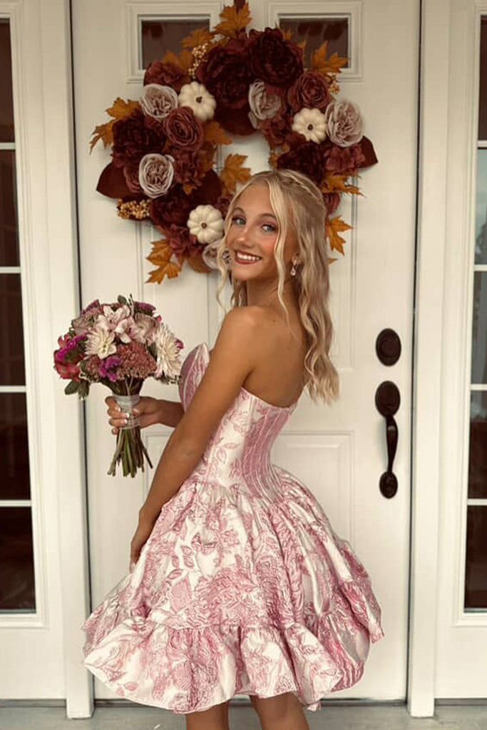A Line Scoop Neck Blush Jacquard Satin Homecoming Dress VK25100610