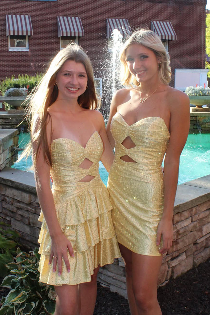 Cute Sweetheart Keyholes Yellow Beaded Short Homecoming Dress with Tiered VK25092407