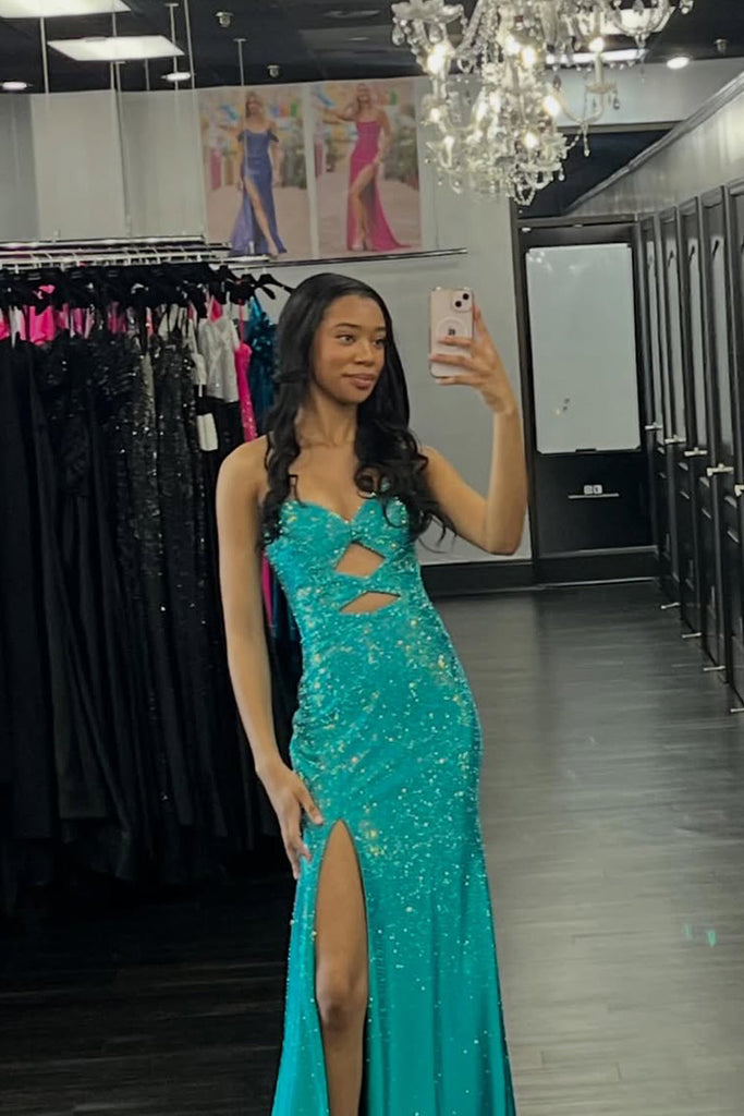 Charming Mermaid Sweetheart Keyhole Aqua Hot Fix Satin Prom Dress VK16020305