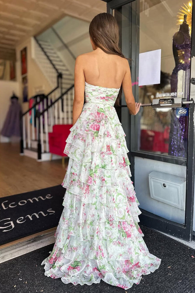 Cute Sweetheart Floral Chiffon Tiered Prom Dress with Slit VK16020301