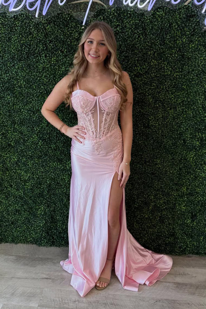 Mermaid Sweetheart Pink Stretch Satin Prom Dress with Slit VK16020607