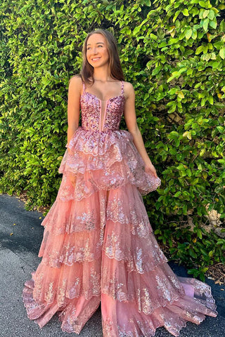 Sparkly Ball Gown Blush Pink Sequins Prom Dresses