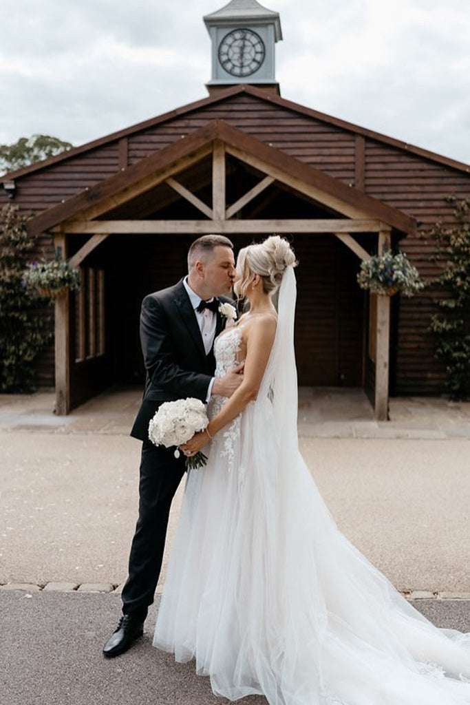 Fairy A Line V Neck Tulle Wedding Dresses with Appliques VK25051401