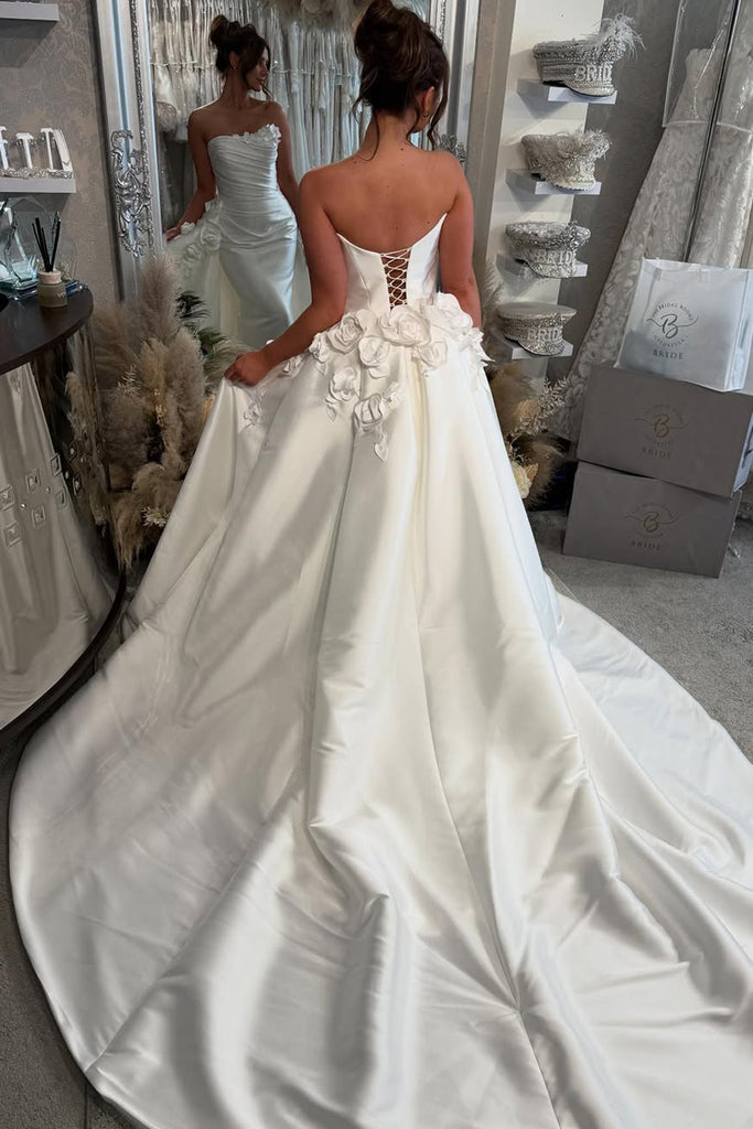 Gorgeous Mermaid Strapless Satin Wedding Dresses with Flowers VK25052403