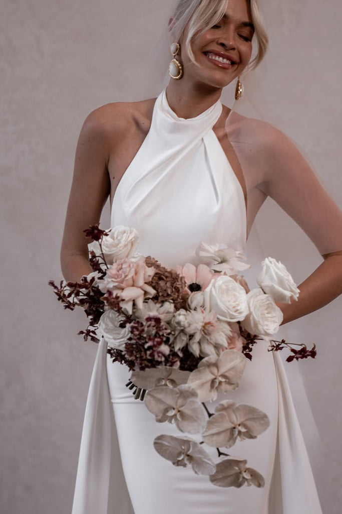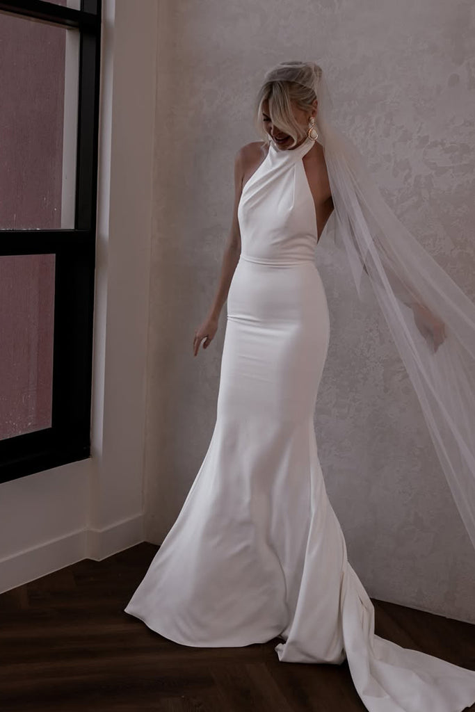 Mermaid Halter Elastic Satin Long Wedding Dresses VK25051103