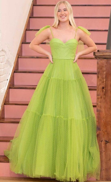 Blue Sweetheart Tie Straps Tulle A-Line Long Prom Dress VK23120702