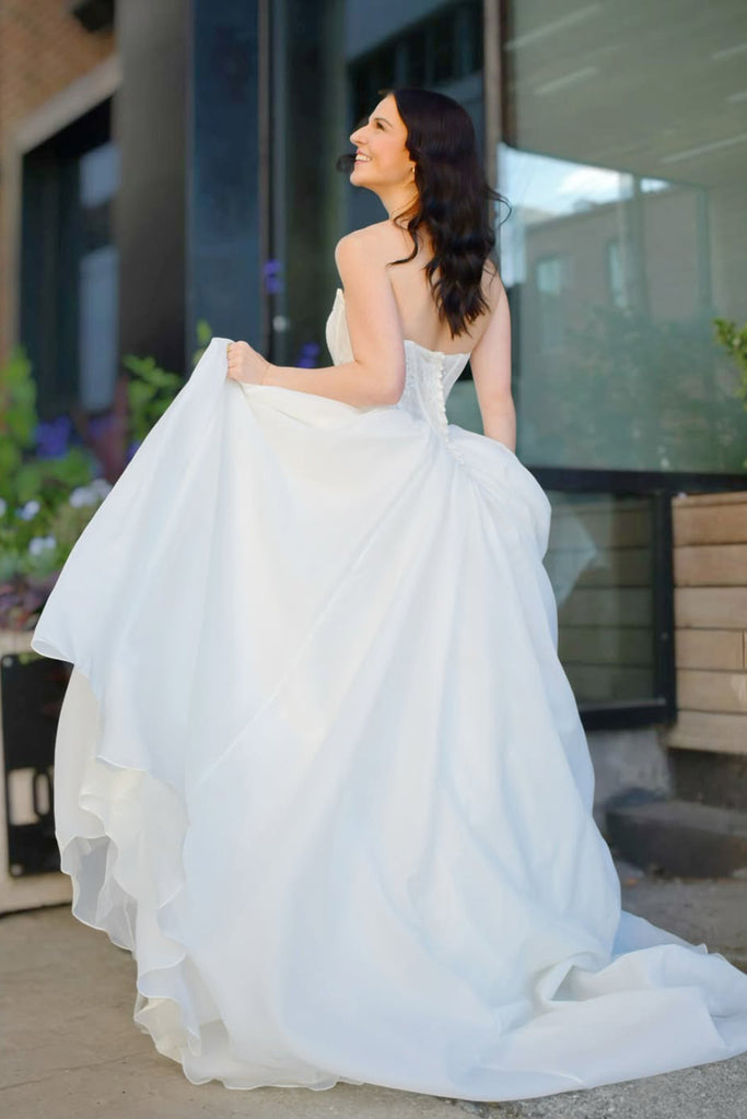 Charming A-Line Strapless White Organza Lace Wedding Dresses VK25102201