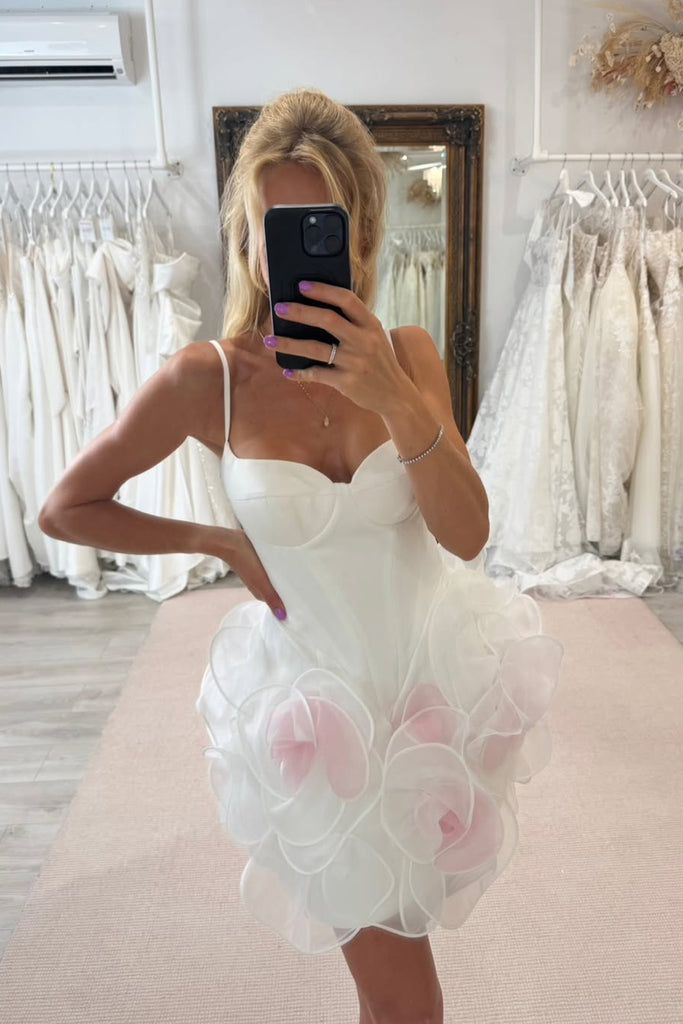 Sweetheart Spaghetti Straps White Short Wedding Dresses with Handmade Flower VK26020507